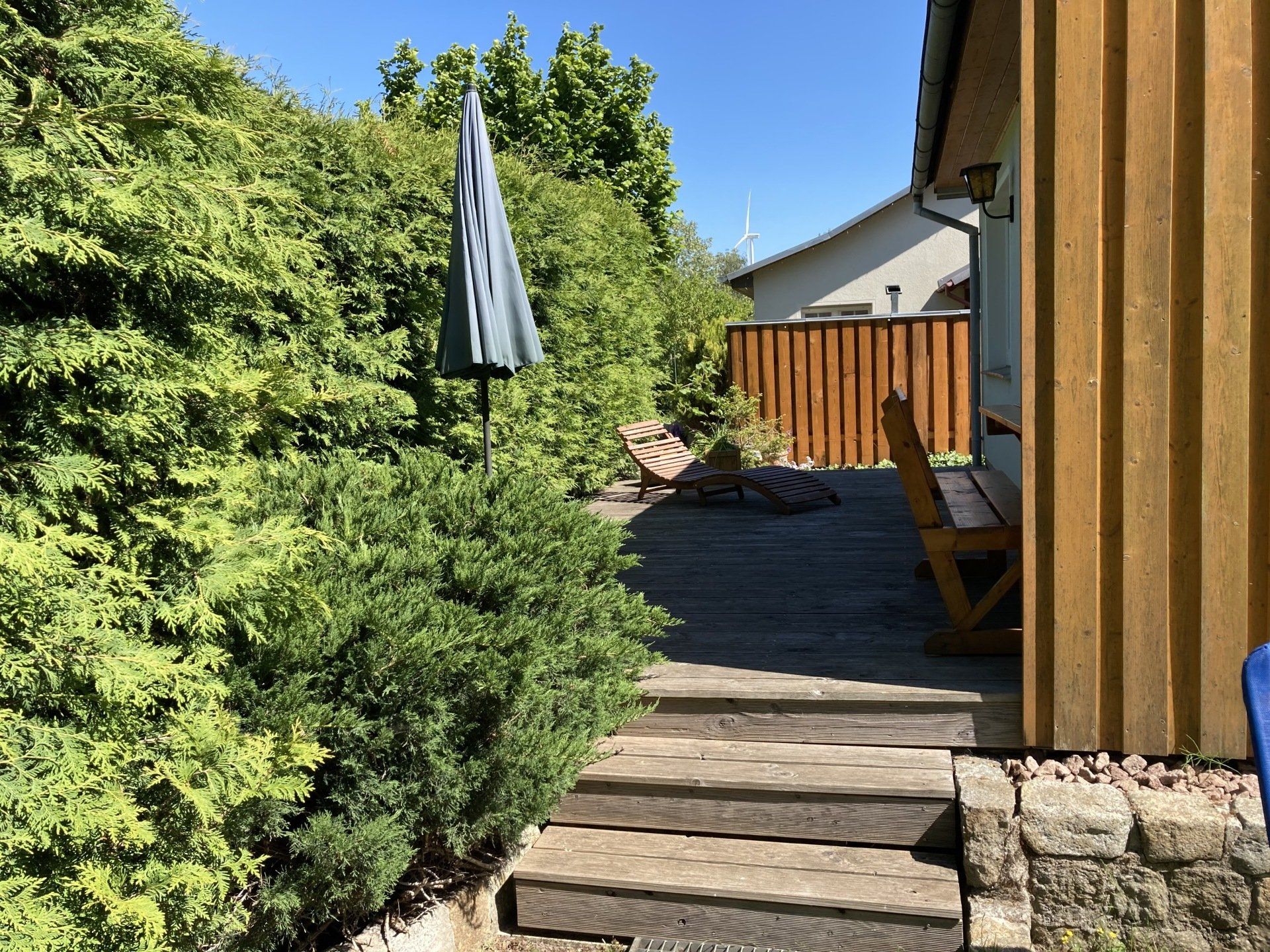 Das Frühstücken bei Vogelgezwitscher und Sonnenschein ist auf unserer Terrasse möglich.